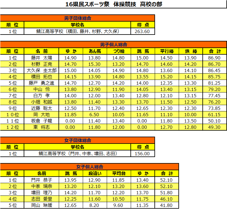 '16県民スポーツ祭 結果