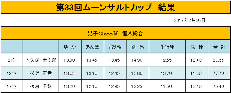 2月26日に行われた、ムーンサルトカップの結果です。