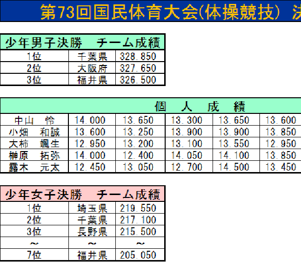 第73回国民体育大会(体操競技)決勝結果